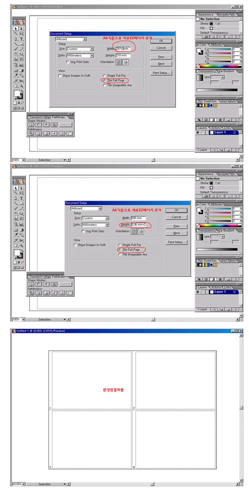 cs2,cs3에서는 document setup에서 가로(210mm*2),세로(297mm*2) 사이즈 정하시고